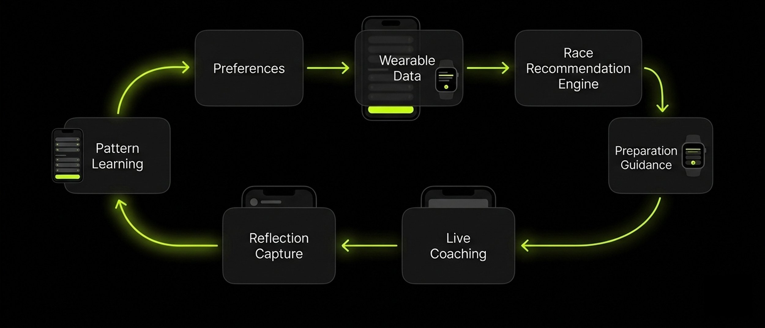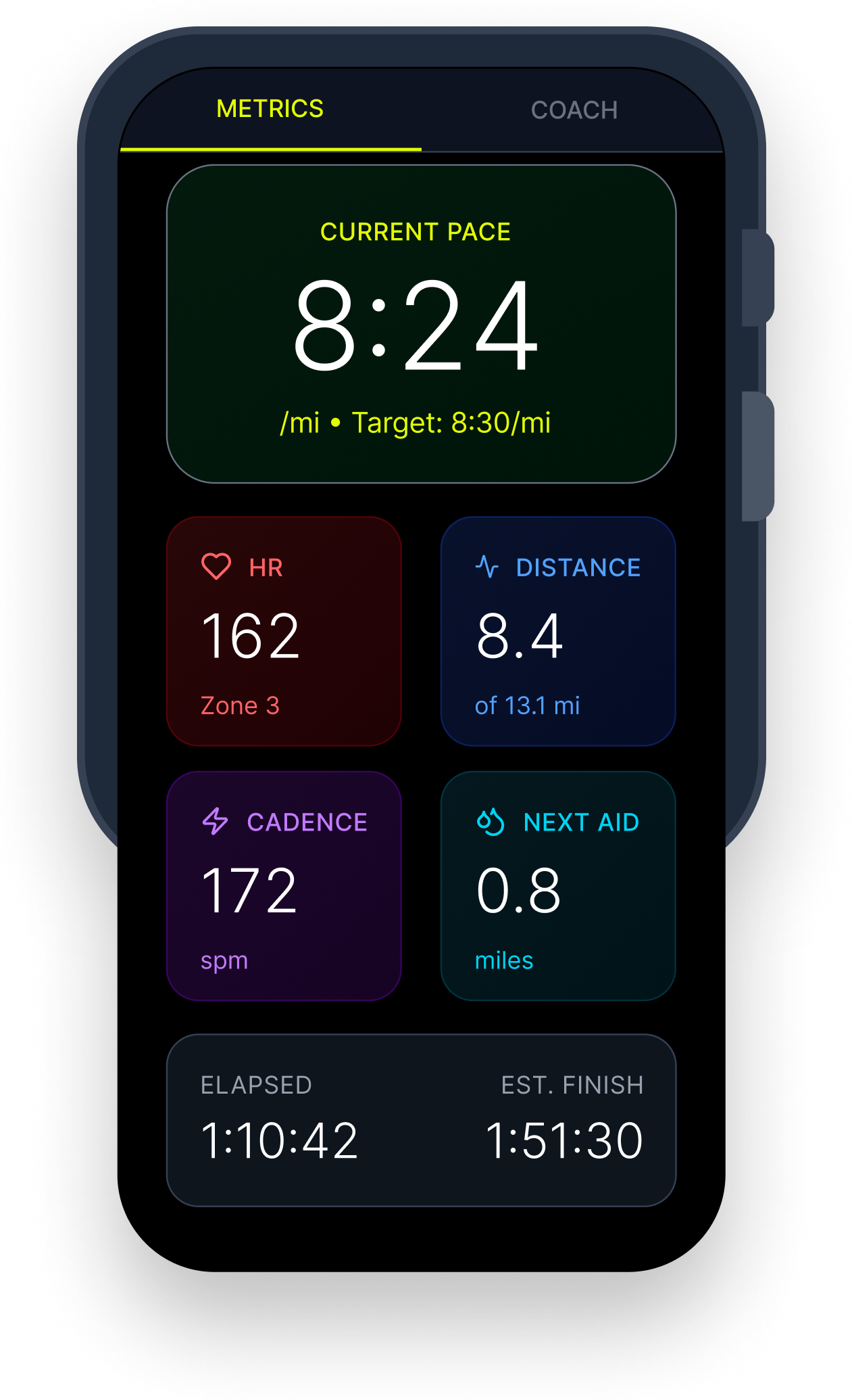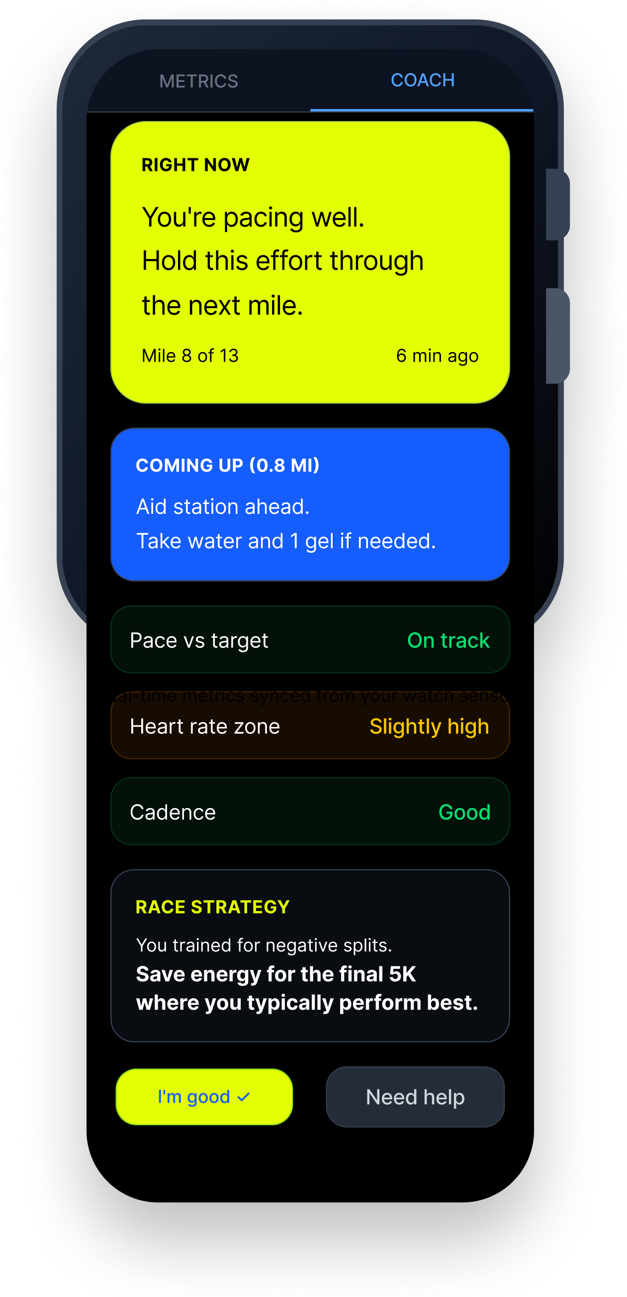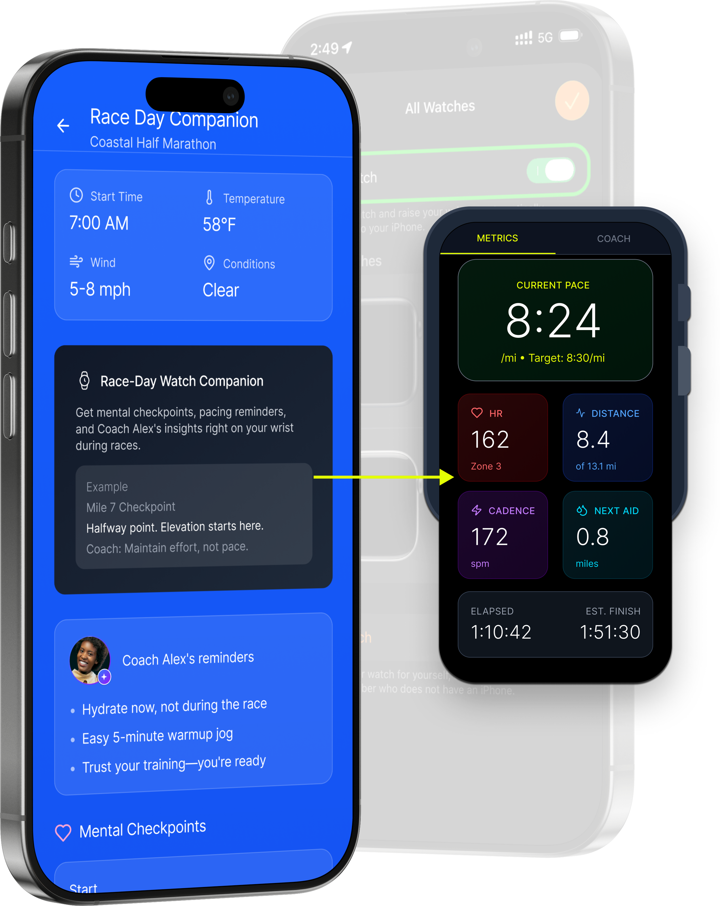 A mobile app + watch companion designed for race preparation, race-day execution, and post-race learning.