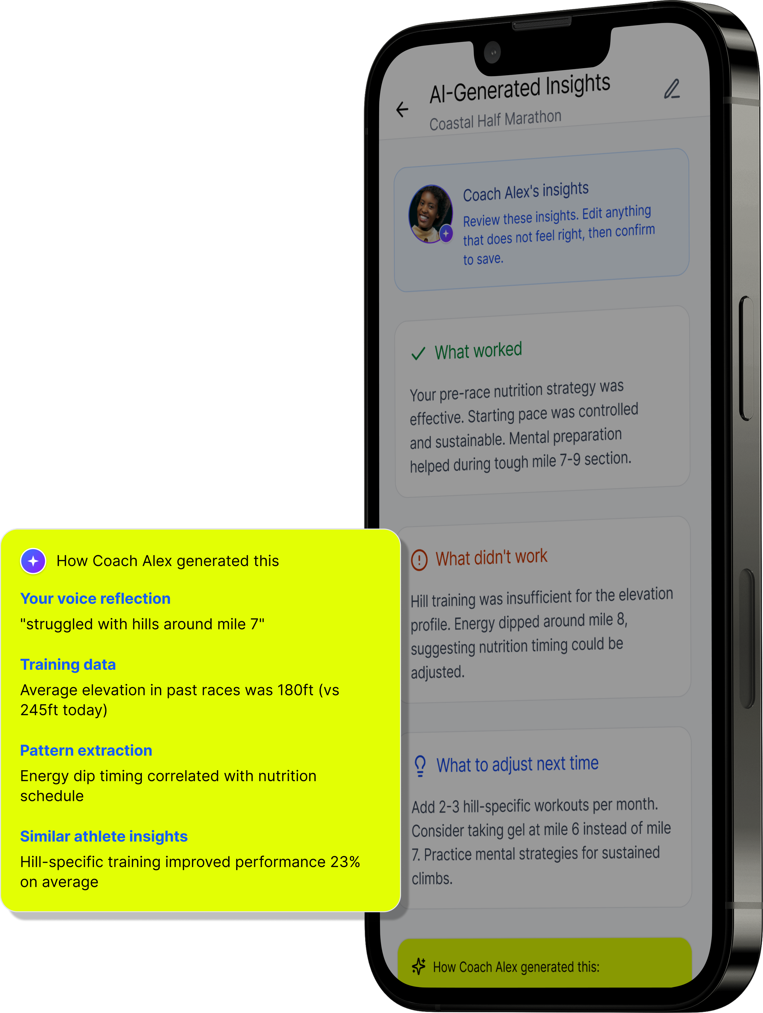 Once confirmed, insights are stored in the athlete’s training history and influence future recommendations.