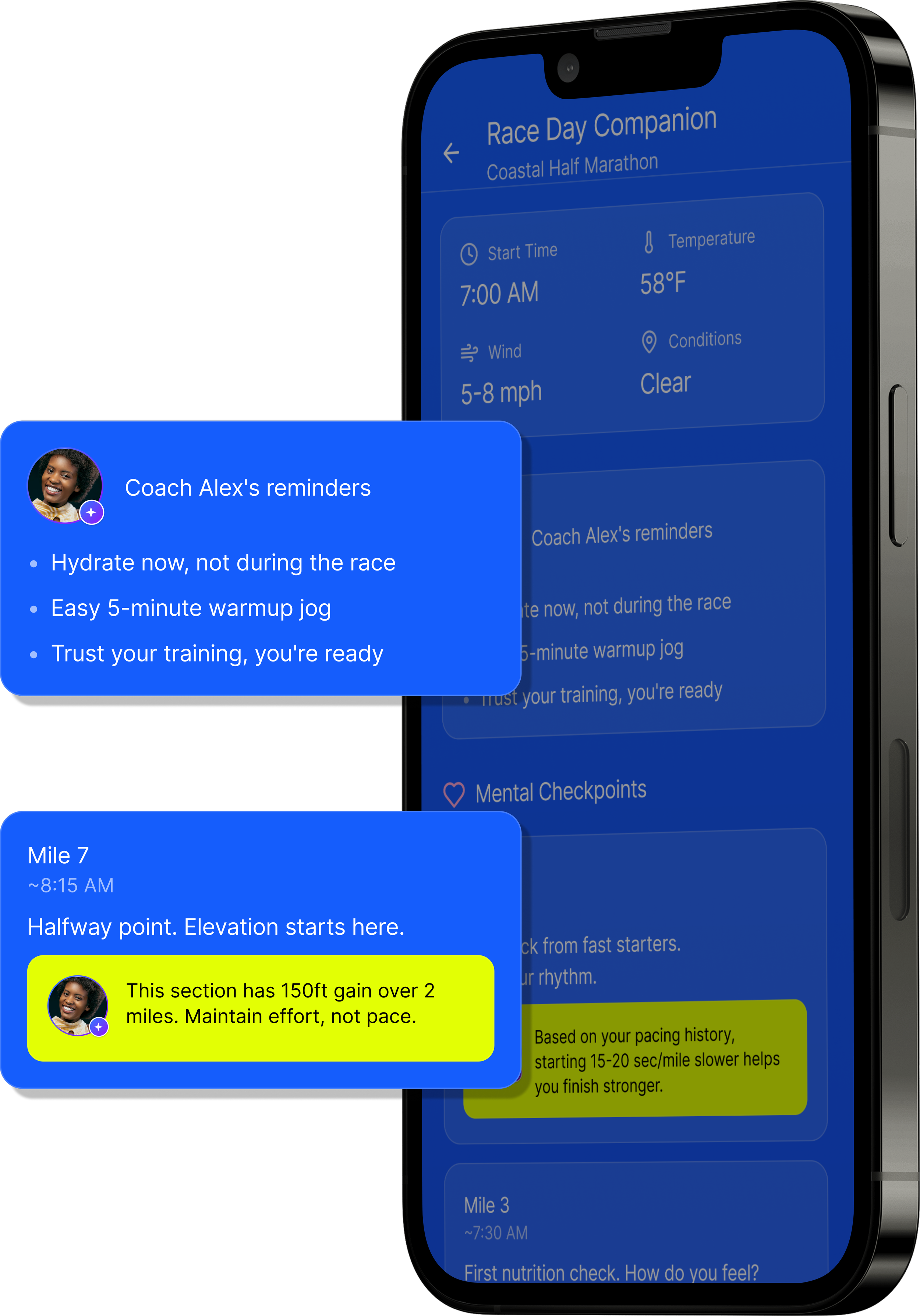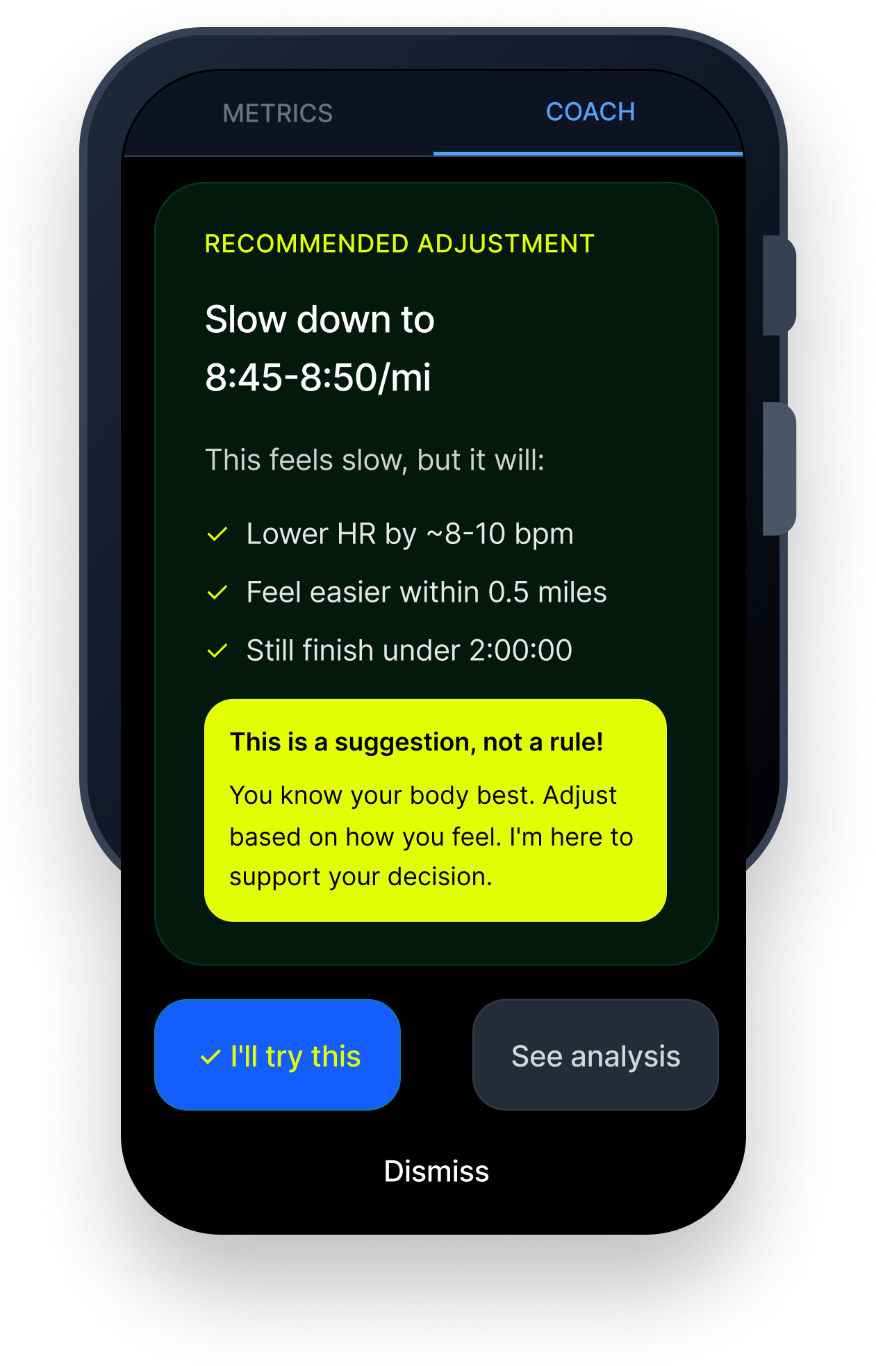 Guidance combines athlete history, peer race insights, and environmental conditions.