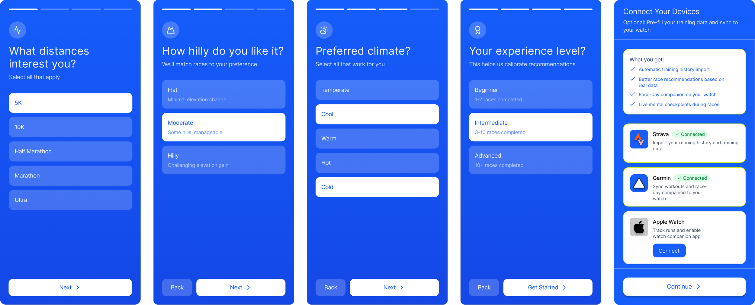 Define race preferences and optionally connect wearable data for richer guidance.
