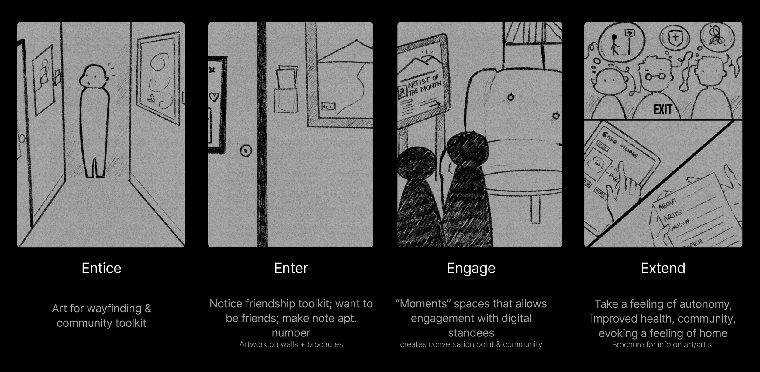 We leveraged visual cues, community-building tools, and creative engagement strategies to enhance navigation, foster connections, and encourage meaningful resident interaction.