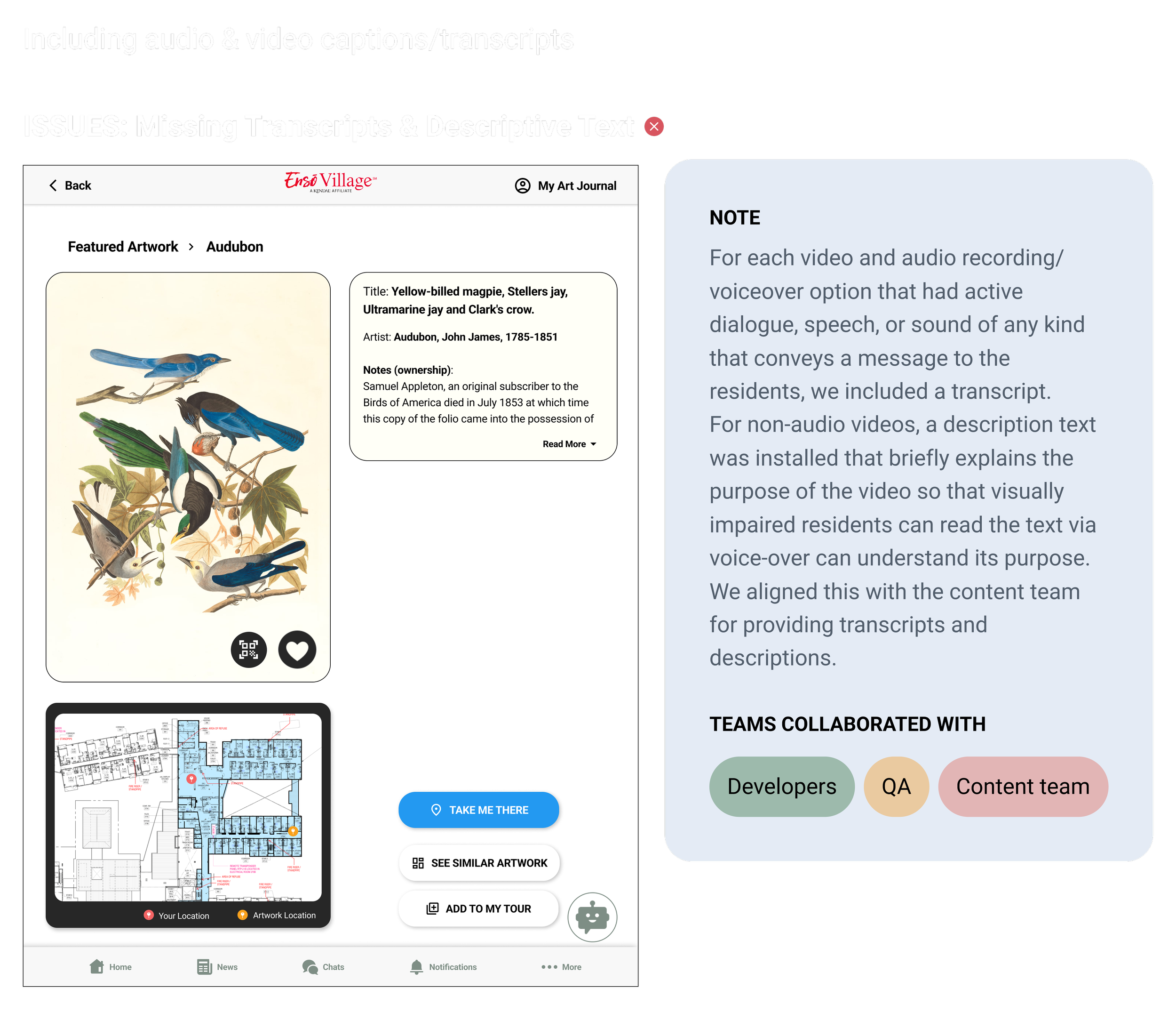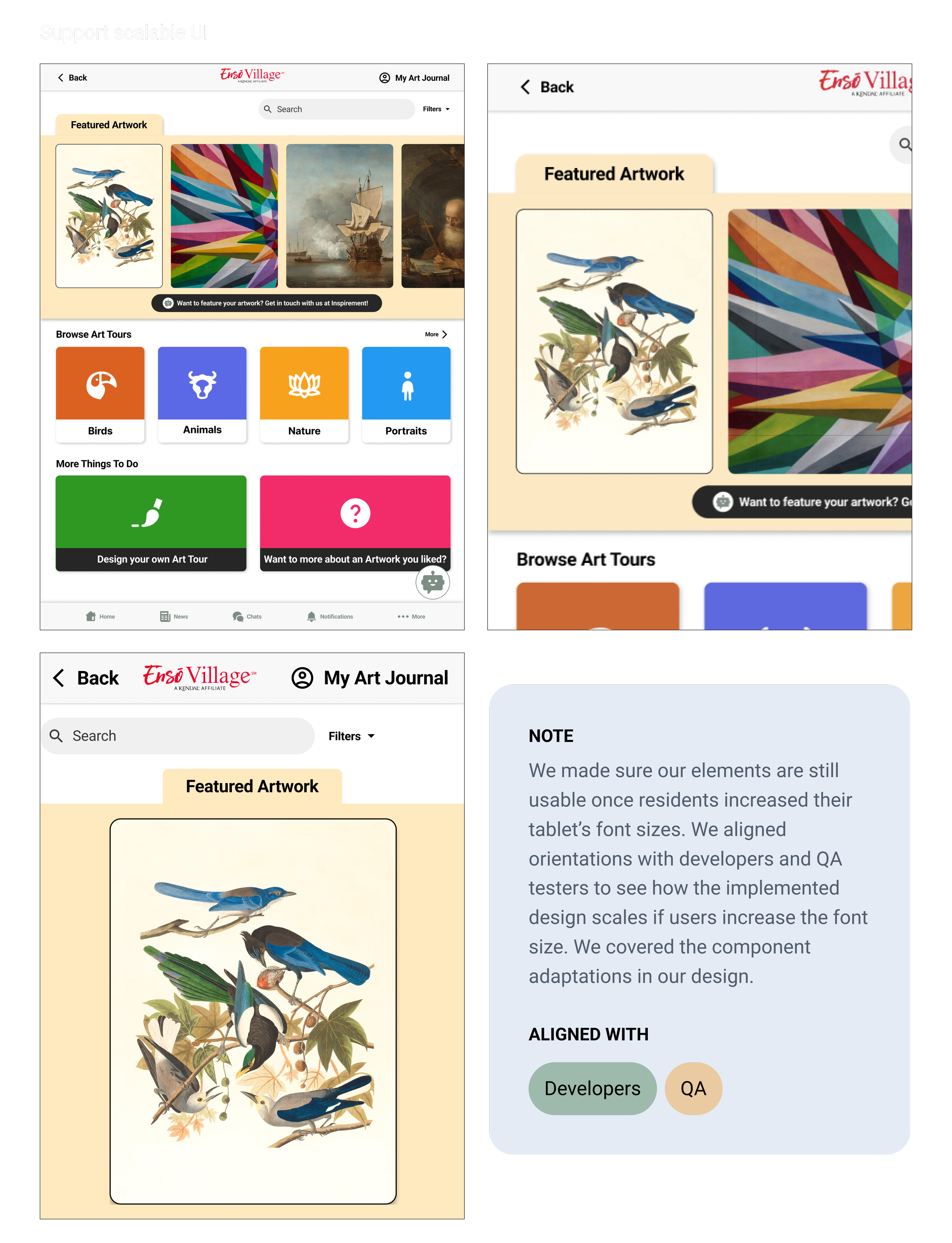 Spaces for residents' notes, reflections, and stories about the artworks. ADA-compliant text size and contrast. Compact 7" x 5.5" booklet—easy to carry.