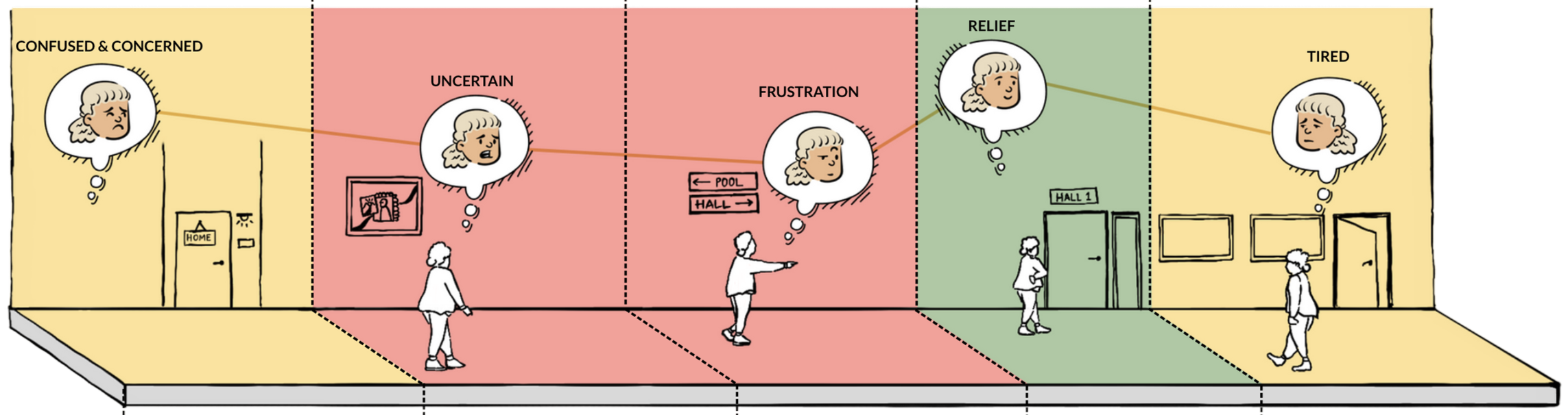 Assessed via resident surveys comparing navigation ease before and after installing direction boards and custom booklets