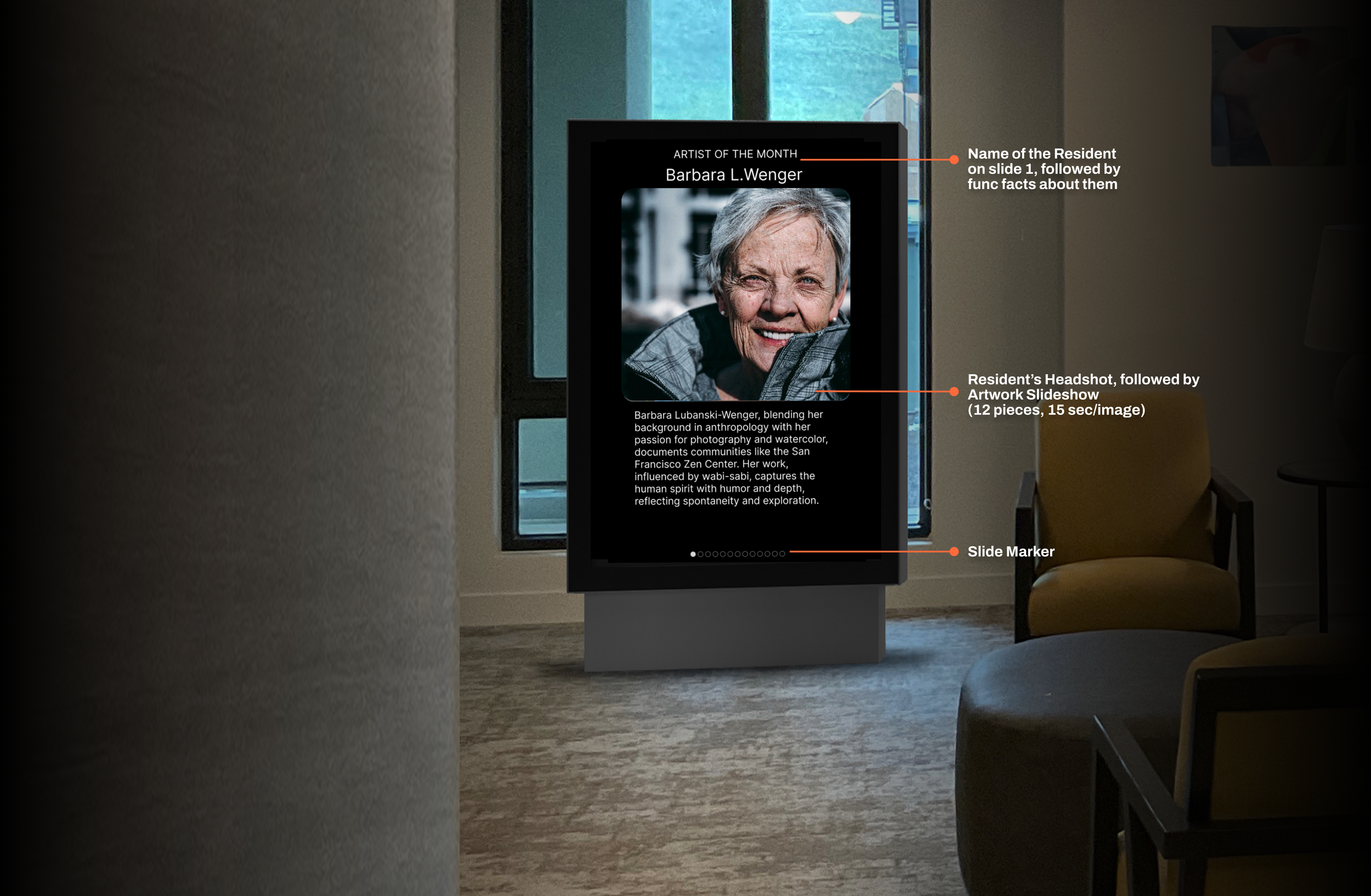 The Screen showcases residents' creativity, boosting pride and community recognition. Displaying artwork sparks engagement and storytelling, strengthening connections beyond routine notices.