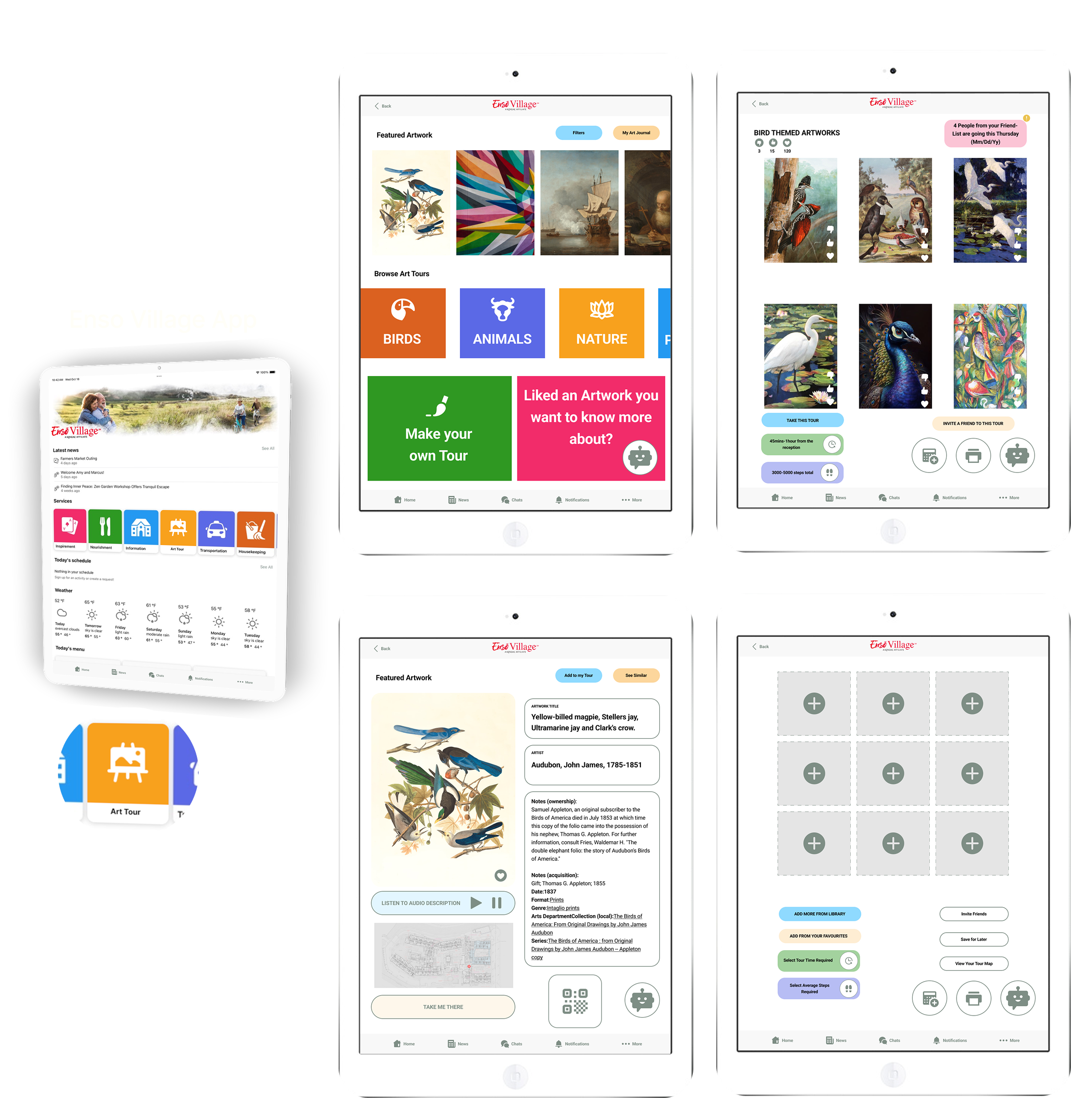 [Navigational Challenges] - [Ensō App Integration] - Complements the physical art experience with [Digital maps and AR features]